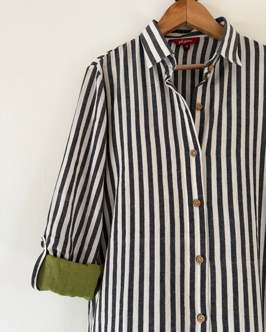 The Long Shirt Dress - grey white striped