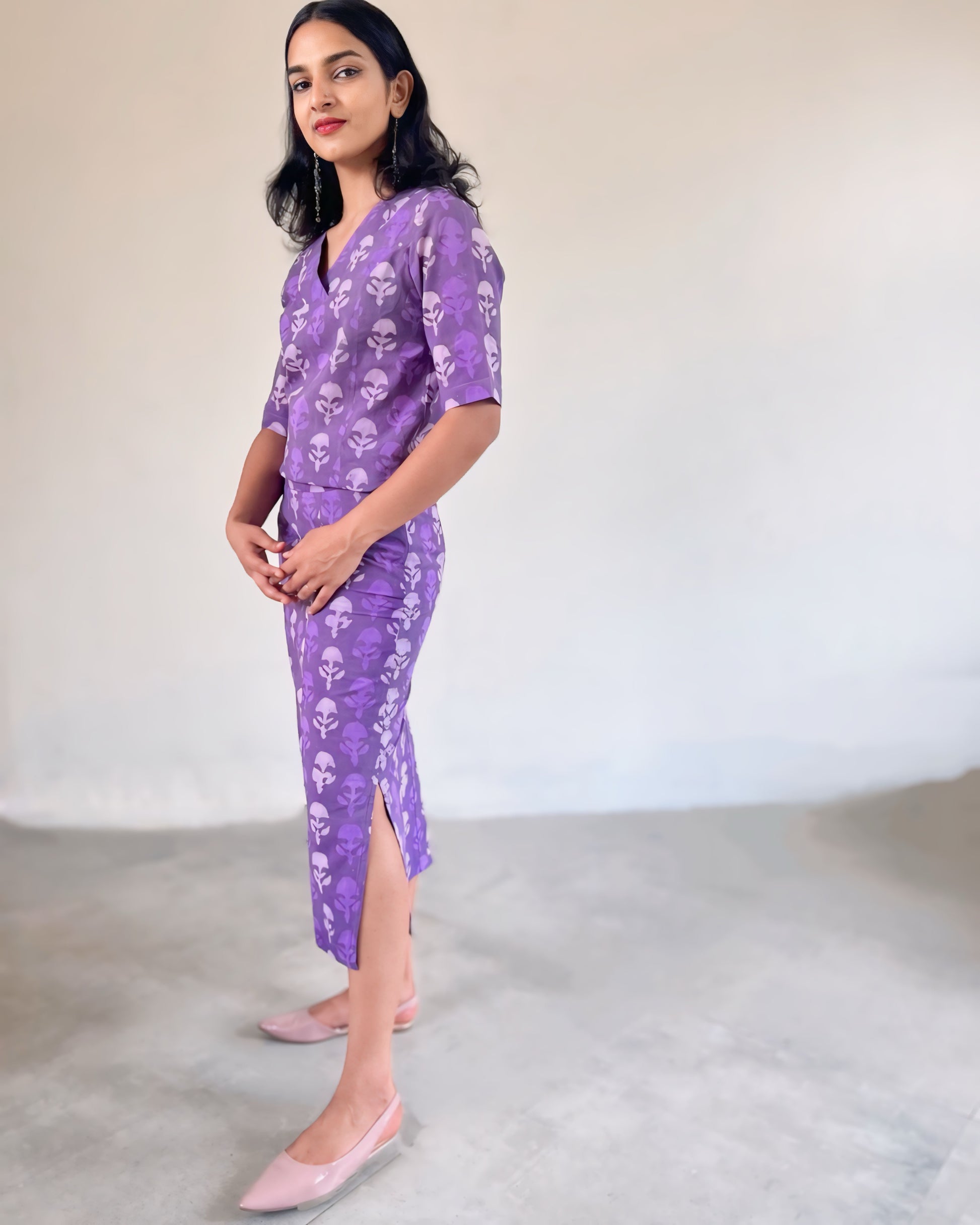 Skirt in Light Purple Block Print
